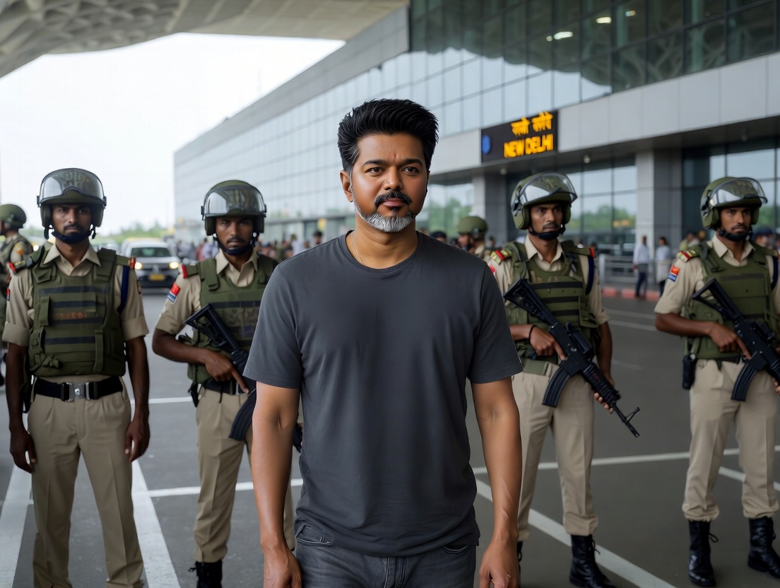 அவருக்கு உரிய பாதுகாப்பு வழங்கப்பட வேண்டும் என கட்சி சார்பில் கோரிக்கை வைக்கப்பட்டது. இதனை ஏற்று, டெல்லி விமான நிலையத்திலிருந்து விஜய் மீண்டும் சென்னை திரும்பும் வரை, 11 பேர் கொண்ட கமாண்டோ குழுவினர் அவருக்கு முழுமையான பாதுகாப்பு வழங்குவார்கள் என சி.பி.ஐ. உறுதி அளித்துள்ளது.